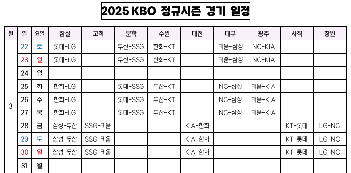 롯데의 경우 3월 28일~30일까지 이어지는 2025시즌 첫 홈경기를 KT와 펼치게 됩니다.