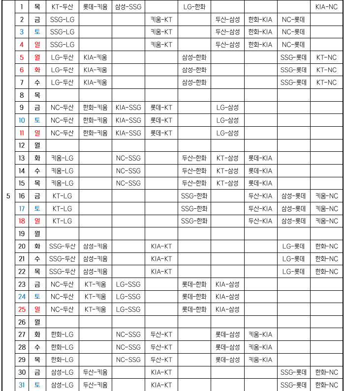 다만 5월 5일은 월요일이지만 어린이날인 점을 감안해 경기를 편성했습니다.