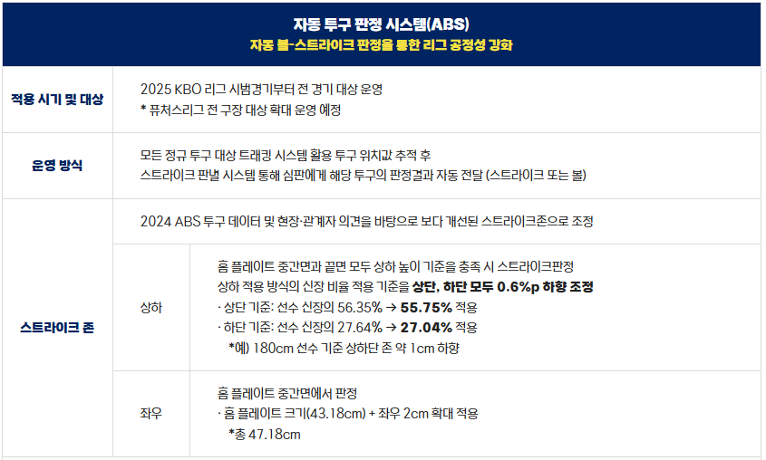 1. 자동 투구 판정 시스템(ABS) : 자동 볼-스트라이크 판정을 통한 리그 공정성 강화