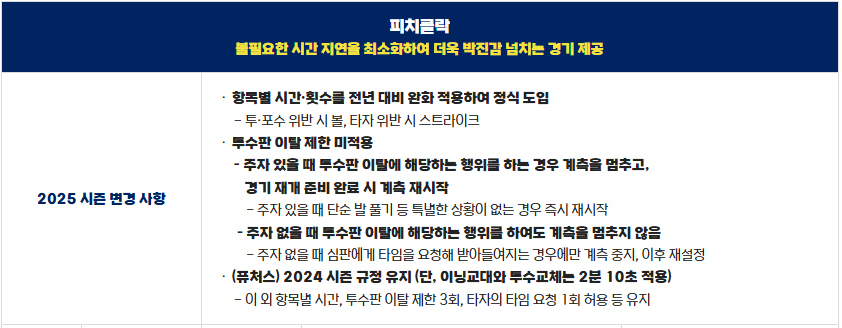 2. 피치클락 : 불필요한 시간 지연을 최소화하여 더욱 박진감 넘치는 경기 제공