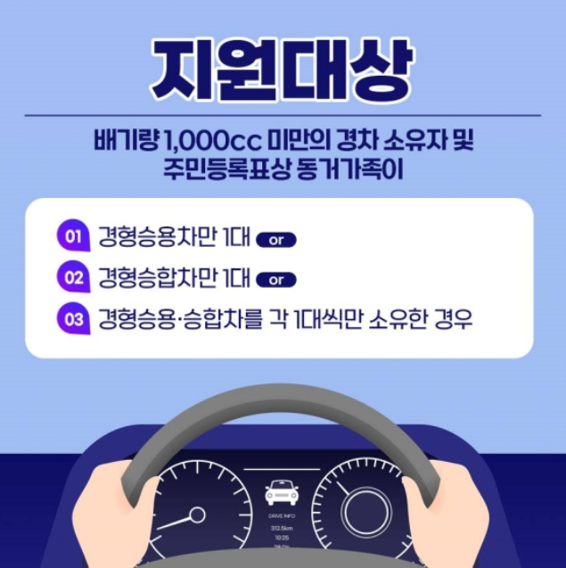 차량 소유자의 명의가 개인이어야 하며, 법인이나 개인사업자 명의의 차량은 지원 대상에서 제외됩니다.