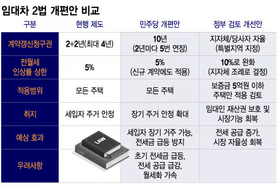 더불어민주당이 주택 임대차 거주 기간을 최장 10년까지 확대하는 방안을 제시하며 논란이 불거졌고, 이에 정부가 사전 대응 차원에서 제도 개편 논의를 서두른 것으로 보입니다.