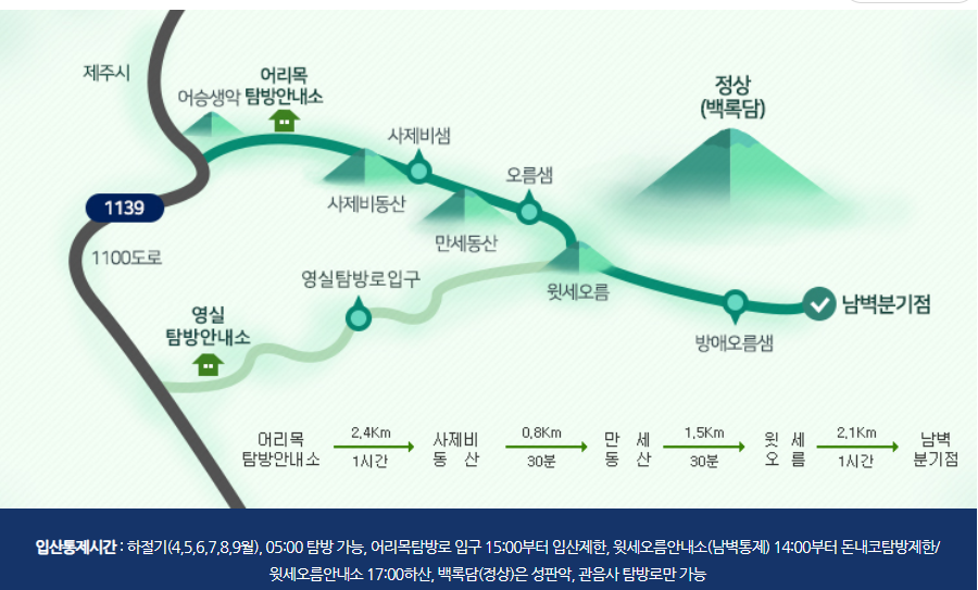 성판악과 관음사는 백록담 정상까지 오를 수 있는 코스로 반드시 탐방예약이 필요합니다.