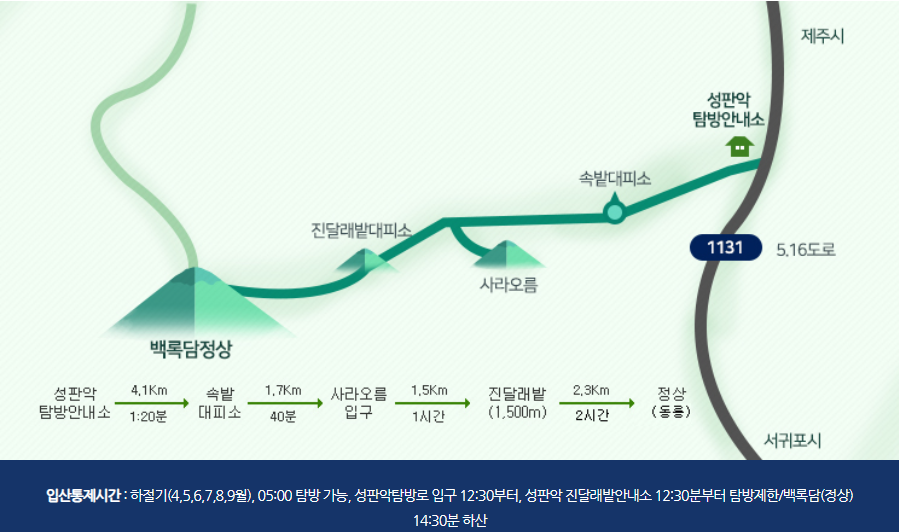 성판악과 관음사 입구는 13:00까지 입장이 가능하지만,