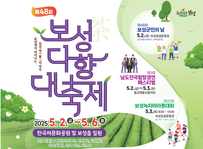 제48회 보성다향대축제는 2025년 5월 2일부터 6일까지 5일간