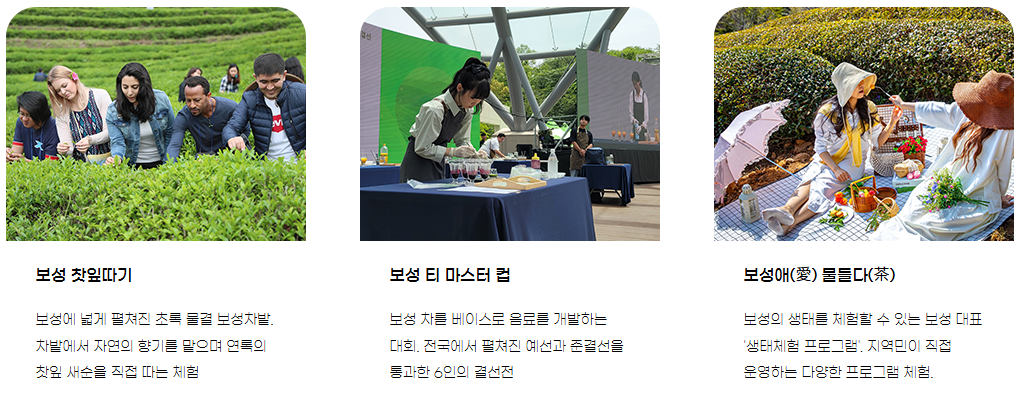 찻잎 따기, 차 만들기, 그랜드 티파티, 블랙이글스 에어쇼, 보성녹차마라톤 등